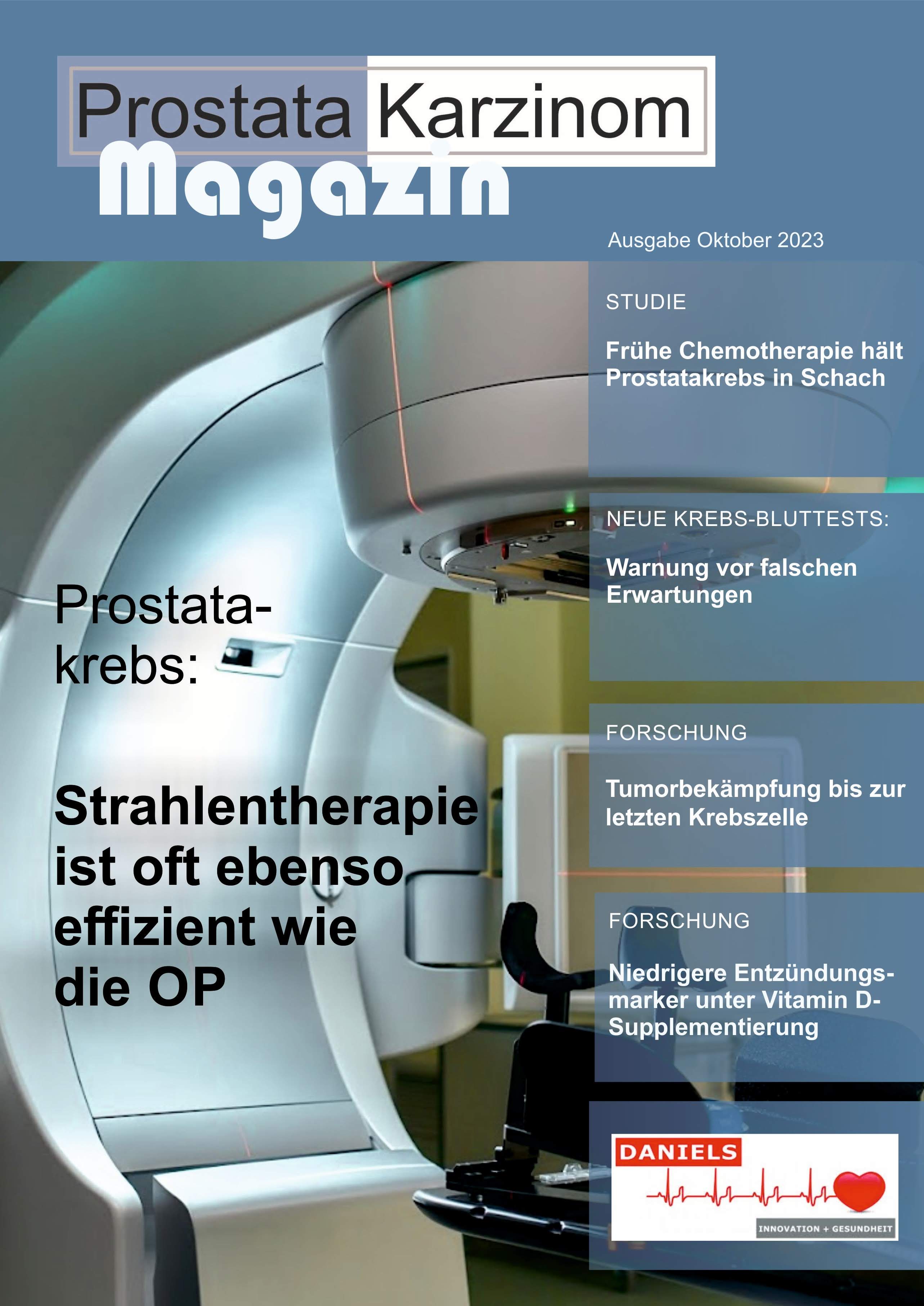 Das neue Prostata-Karzinom Magazin können Sie in unserer App oder in unserem Newsletter kostenfrei lesen. Das Anmeldeformular finden Sie unter: www.daniels-innovation-gesundheit.de